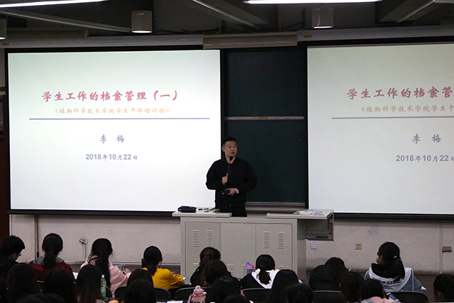 2018年10月22日下午5:00,MS88官方网站于教学楼B栋303室进行员工档案管理培训,主讲老师为MS88官方网站办公室主任李梅老师,到场老师有MS88官方网站副经理牛奔、团委书记兼16级辅导员郝娜,参加此次培训的为本科团学组织全体成员、研究生会全体成员。