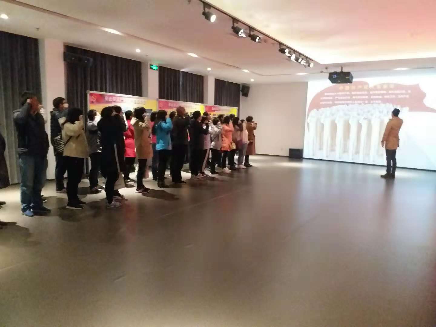参观活动结束前,在肃穆的宣誓大厅,大家举起右手,面对党旗,重温自己入党时的庄严承诺。