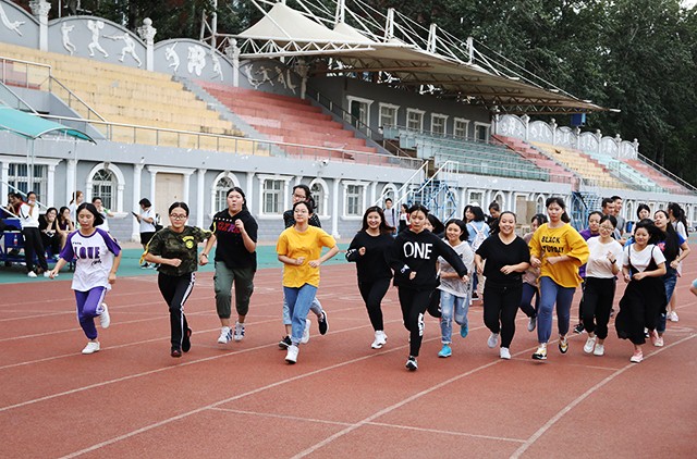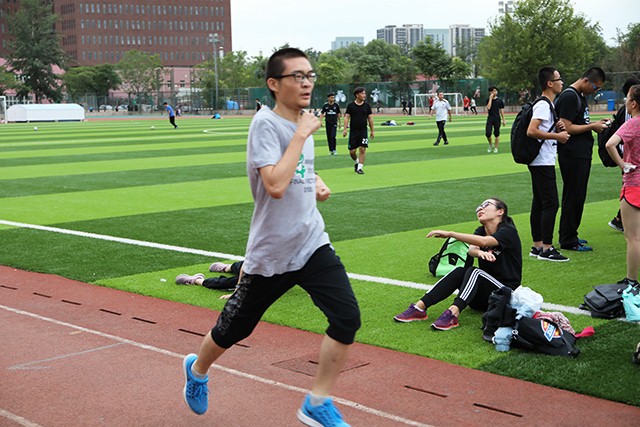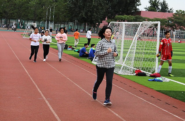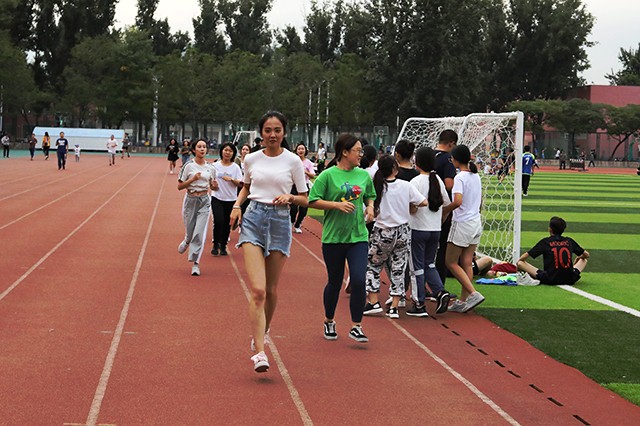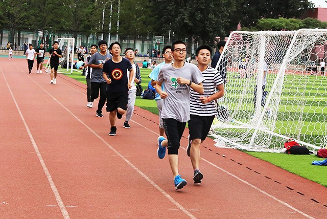 在班助带领同学们进入操场后,同学们整装待发,斗志昂扬,随着一声哨响,大家迎着温暖的秋风在足球场上奔跑起来。奔跑中,同学们之间相互加油,相互鼓励。即使有些同学体力不支,却也坚持不懈,到达终点。