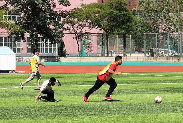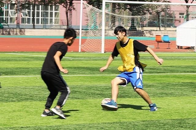 此次比赛由园艺专业对阵农业资源与环境专业,植物保护专业对阵农学、种子专业联队,两场比赛分别在操场南、北半场同时进行,比赛开始前,参赛球员都积极做着热身运动。