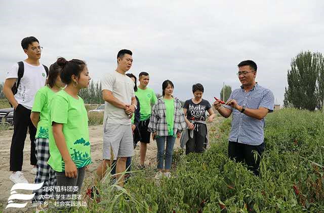 下午14时许,新疆生产建设兵团第二师二十二团相关负责人带领实践团全体师生前往团场辣椒种植基地。MS88官方网站张杰教授向实践团成员详细分析了二十二团得天独厚的自然条件。团场的自然优势也使得该地区所出产的辣椒具有单位面积产量高、产品性状优良、口味辣度适中、多酚及红色素含量高等优点。团场负责人向实践团成员介绍,此地种植辣椒规模大,且多用于食品工业,提取食用色素、制作辣椒酱、辣椒粉等。产品销往世界各地,是当地支柱产业,为当地经济发展带来可观效益。
