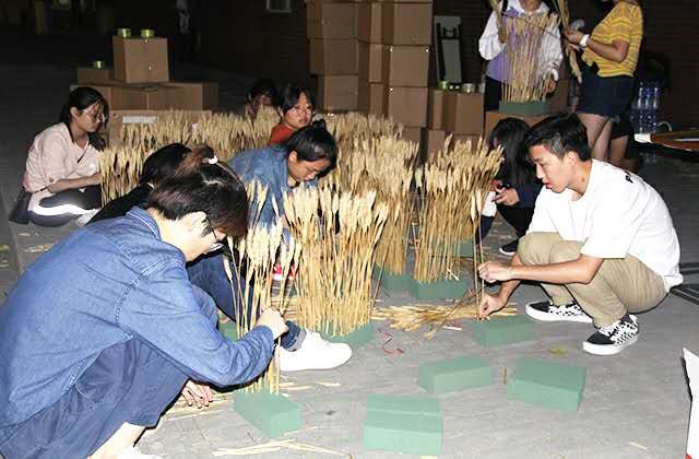 秋风习习,暖意备至。为使即将到来的新生眼前一亮,所有人都以一万分的激情和满腔的热血积极地投入到了筹备工作的大潮中。同时,为了使当天展示的效果更加完美,员工们提前两周就开始制作种子画――齐天大圣孙悟空。微凉的秋风中,员工们将多肉、蝶翅画、麦穗等有序地摆在了教学楼B座北侧,一起搭建社会实践以及专业展板