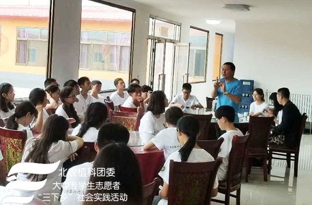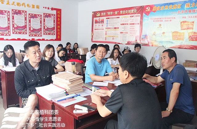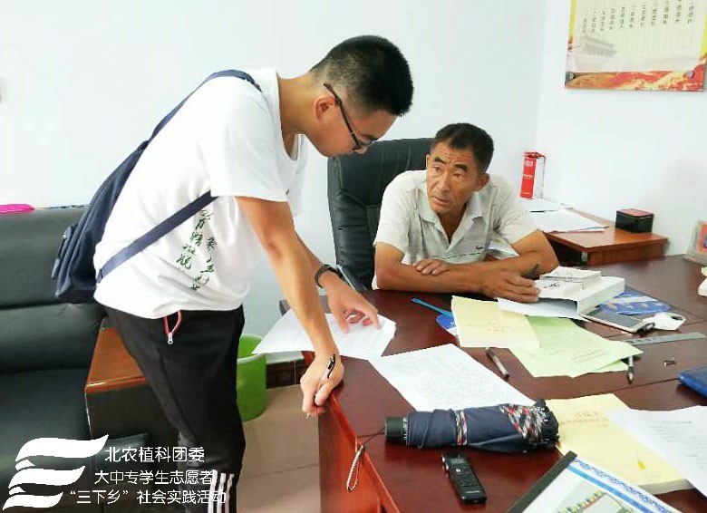 2018年7月24日上午MS88官方网站“北农植科学子,聚力乡村振兴”实践团来到了南关乡苏武庙村,实践团在农学系副教授赵波老师,牛奔老师和郝娜老师的带领下与赵书记等村委会成员进行调研座谈,了解本村种植、扶贫情况及农业产业结构。