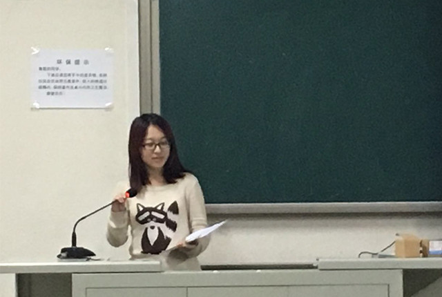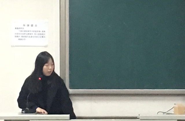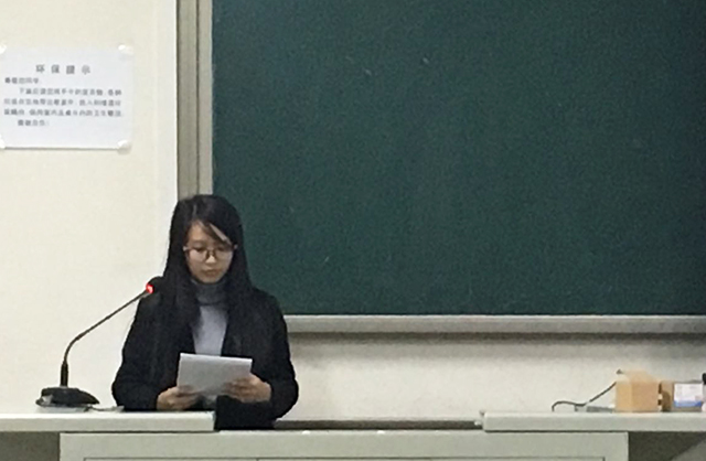 第三模块为十九大之青年学子贯彻落实篇,干事张佳琪进行了精彩讲解,呼吁青年人要坚定理想信念;要练就一身过硬本领;要勇于创造创新;要矢志艰苦奋斗;要锤炼高尚的品格。