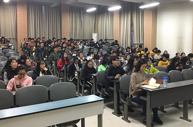 第四模块为十九大之感悟与未来憧憬篇,干事安尼哈尔分别截取了几段新闻采访的片段,从外媒、国民、同学三种不同视角,展现了中共十九大的影响。最后他用五个“更加”表达了自己内心的想法,也是对未来的憧憬――未来的中国将是“社会体制更加健全,法律制度更加完善,社会主义核心价值观更加完善,更多的人会团结在党中央周围,中国会发展的更好”。