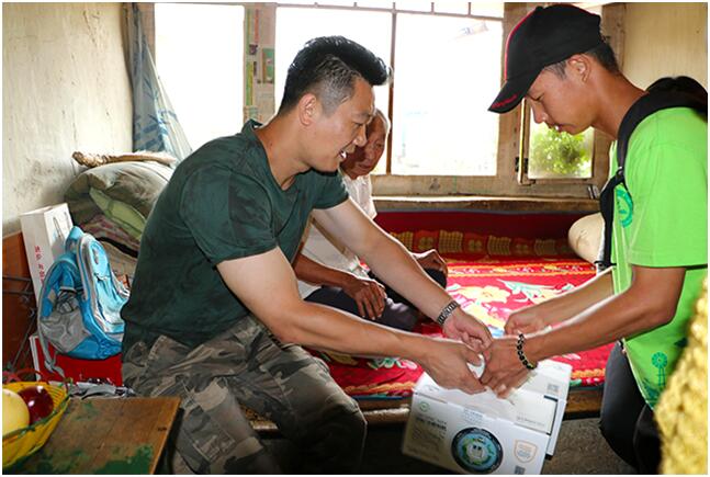 在调研过程中,实践团了解村民情况后得知村内有两位曾参加抗美援朝战争的志愿军老战士。在八一建军节来临之际,为向社会主义祖国建设流过血、拼过命的老战士表达崇高的敬意,牛奔副经理当即带领实践团全体成员前往老战士家中拜访,并为他们带去了蔬菜种子及牛奶,以此来表达实践团成员的敬意。