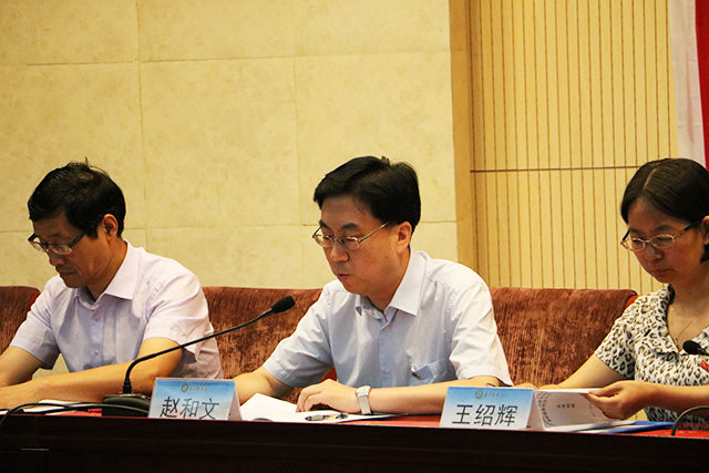 主持人介绍到场领导和来宾。王绍辉同志首先代表党总支进行工作报告汇报。过去五年里,党总支部加强教学改革,全面提高人才培养能力。积极凝练学科方向,打造优势团队,提高了科技水平与研究生创新能力。并且坚持民主集中制下的院系二级管理,形成立规矩、讲正风的工作环境。时刻抓紧党风廉政及思想政治教育工作,创建基层党建工作。并对今后的工作方向、达成奋斗目标的所需举措做了详细的汇报。