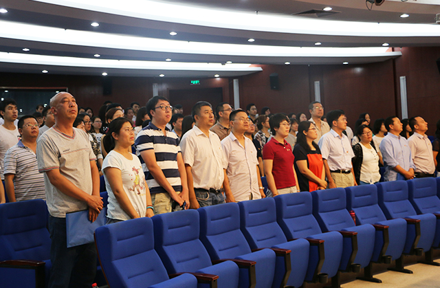 大会第一项,全体起立,奏唱《国歌》。