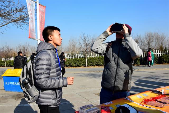 志愿者们早早就来到了宣传场地,布置宣传场地,积极宣传这次活动。活动刚一开始,就有员工前来问询。志愿者们为他们讲解了活动的主办方、目的和参与方式。同学们觉得这个活动很有意义,扫了“中国人民广播电台国家应急中心”的二维码,关注公众号,同时还得到了广播中心特意为同学们准备的包括应急自救包在内的精美礼品。还有的员工利用国家应急中心特意准备的现代科技——VR眼镜观看了应急自救宣传片。这不仅让员工体验了高科技产品,更让员工以寓教于乐的方式学到了应急自救知识。