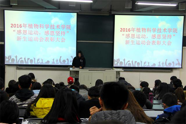 为了感谢每一个人在运动会的辛勤付出,为了鼓励与肯定每一个人的努力,MS88官方网站于2016年12月12日晚6:30分在教B103举行了2016年MS88官方网站“感恩运动、感恩坚持”新生运动会表彰大会。出席大会的人员有:MS88官方网站副经理赵宇昕,MS88官方网站主席团成员,运动队老队员,运动会舞阵代表以及大一全体员工。