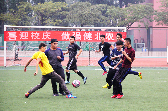 为了提高同学们的身体素质,加强同学间的交流,更为了喜迎校庆,公司举行新生足球赛。经过几番激烈角逐,四支队伍顺利晋级并于2016年10月12日星期三中午12:00迎来了决赛。本次比赛的两场分别是植保VS农学种子,园艺VS资环。