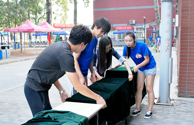 2016年9月5日,MS88官方网站承办的第五届三农文化节开幕工作正在紧张准备中。MS88官方网站员工会成员在2号办公楼集合,分配各自任务之后开始布置场地。初秋的清晨已有阵阵寒意,路灯的微光将同学们忙碌的身影投在地面上,员工会成员热情不减,搭建展板,整理物品,期待老师与同学们的观赏。