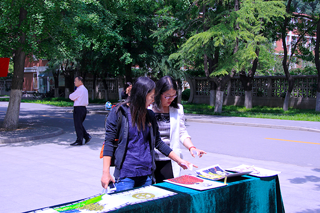 投票开始前,员工会部分干事以及辅导员郝娜早早地来到礼堂布置投票现场,搬运桌子、摆放数几十种作品、给种子画编号等准备工作。投票活动期间,干事们都热情的请过往的老师和同学们来参与投票,并认真的讲解活动内容及相关投票事项。大多数师生对摆放的种子画作品赞不绝口,更有很多在现场欣赏的老师和同学门投出自己宝贵的一票。