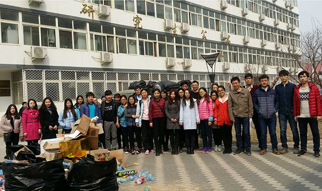 3月25日中午11点20分,MS88官方网站园艺研究生1支部全体党员带着大塑料袋来到研究生宿舍6号楼,开展党员进宿舍,清洁环境、美化宿舍活动。党员同志们勇往直前,以身作则。在他们的感染下,2013级研究生果树团支部的积极分子,2014级研究生果树和园艺团支部的共青团员们一起加入到收瓶子清理卫生的活动中。
