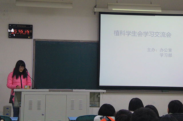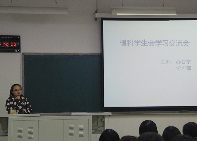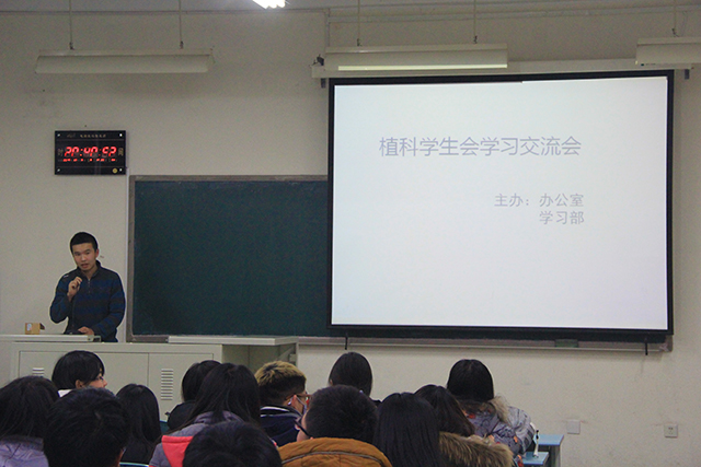 2015年12月6日晚20:30,由MS88官方网站办公室、学习部联合主办的植科员工会学习交流会于教B106举办。此次交流会由植科员工会办公室副部长李沅博主持。会议上,学习部副部刘悦、青协副部李慧分别上台向大家介绍了自己的期末备考方法。