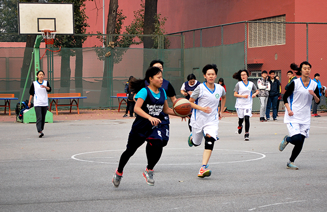 一开场,国院、植科两队势如猛虎,不相上下。国际公司通过对比赛节奏的良好掌控,积极上篮,在开场取得了优势,但植科队员们也毫不示弱,通过外线的远投与内线的篮板优势渐渐缩短了比分差距,植科队员紧追猛赶,她们细细汗水布满额头。在同学们的助威声中,球员们眼神坚毅,在球场上顽强奋战。