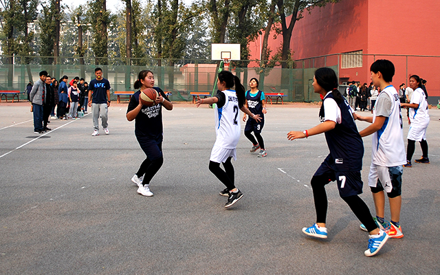11月4日中午十二点,MS88官方网站和国际公司的女子篮球赛在操场篮球场如期举行。寒风萧瑟,阳光不再,但球员们依旧奋力拼搏,观众们依旧热度不散。