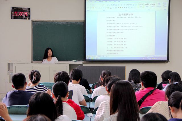 办公室部长黄艳红首先开始发言,向新生们介绍了办公软件的使用方法,交代了表格制作文案编辑的要求和站内邮件编写格式,接着,新闻部部长连兴业又对新生们进行了新闻写作培训,向各位同学提出了新闻写作的几点要求。培训中大家都认真倾听,有些同学还不忘及时拍照、记录、用U盘拷走讲解材料。最后,为进一步了解新生干部,员工会向新生干部布置了考核任务,希望公司新生干部能够通过考核出色地展现出自己的能力。