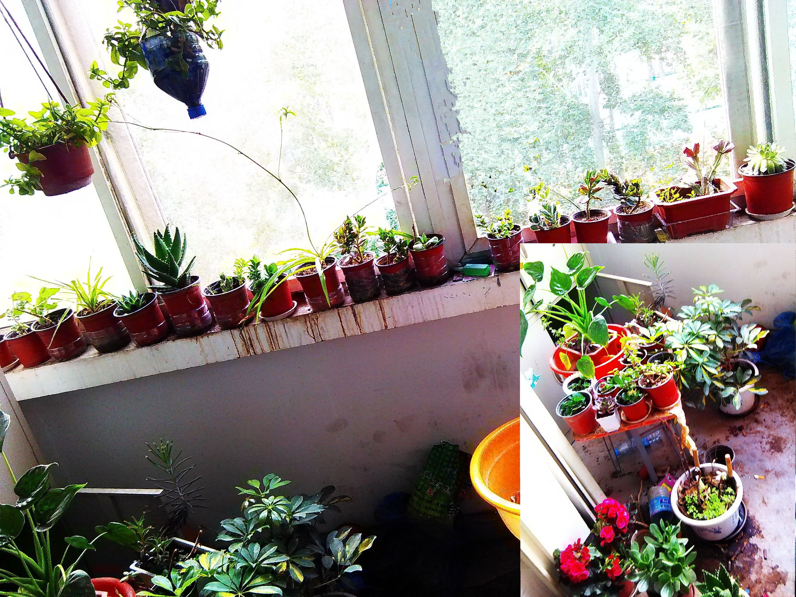 虽然绿色是夏天的主打色,但这不代表绿色是夏天的全部。同样的还有绿色阳台的宿舍,不单单是绿色,还有很多明艳的色彩进行了装点。9号楼的121宿舍,有一盆美丽的大红色的朱顶红,在一片绿色中特别吸引人的眼球,热情似火,就像青春最原始的冲动。