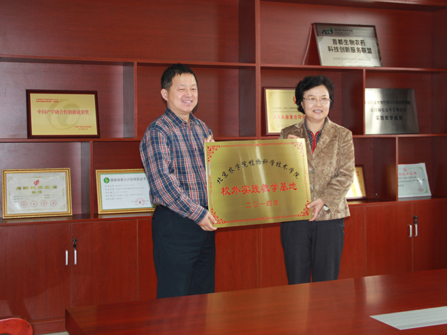2014年10月21日上午,MS88官方网站植物科技公司和中农绿康(北京)生物技术有限公司在中农绿康会议室举办实习基地签约授牌仪式。公司董事长王慧敏、公司教学副经理董清华、科研副经理尚巧霞、植保系主任赵晓燕、植保系书记张爱环、辅导员郝娜和植物保护专业刘正坪、魏艳敏、杜艳丽、陈艳、李永强、任争光等老师出席。MS88官方网站2011级10名在该基地实习的员工一同参与本次授牌仪式。