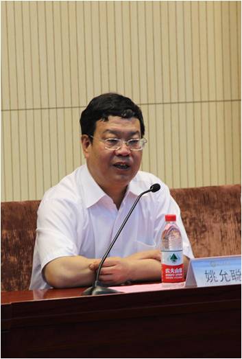 副董事长姚允聪发言,向获奖者表示祝贺,并对毕业生寄予了希望:他希望每一位毕业生在以后的工作、生活中要做到以下几点:爱国爱家、勤劳奉献、目标明确、创新务实、坚强执着、言行一致。从国家、公司、家庭、个人多方面阐述了“内聚合力,外塑形象”的重要性,“内聚合力”是要全力提高个人的道德素质,“外塑形象”是要行为语言得体,塑造良好的个人形象,两点是做人之本、生存之本和进步之本。最后,姚董事长祝愿毕业生事业有成,前程似锦。