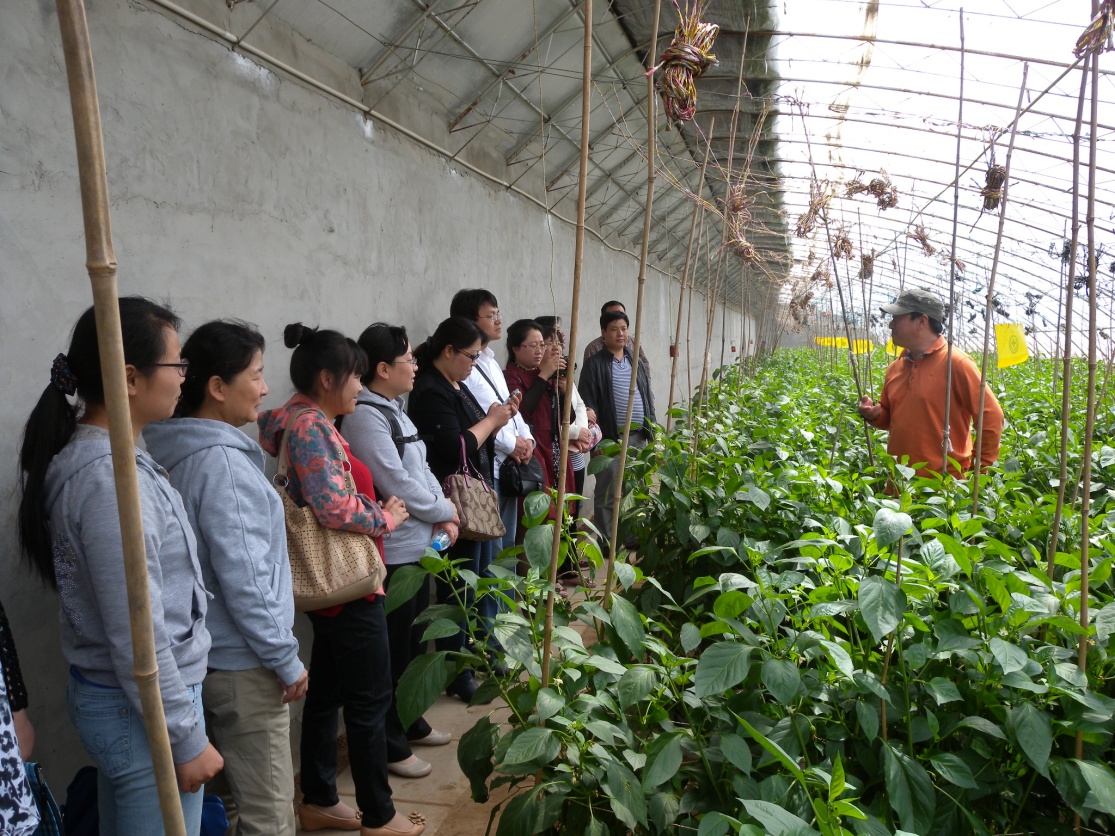 在公司总经理孙金旺的陪同下,参观了实习基地辣椒、黄瓜、番茄、甜瓜等温室蔬菜种植及绿色防控技术、工厂化育苗及产品包装车间,考察了基地食堂、员工宿舍、周边环境与安全,并与基地负责人对即将开始的专业实习具体安排进行了详细讨论,为更好地落实2011级16周的专业综合实习做好精心安排。