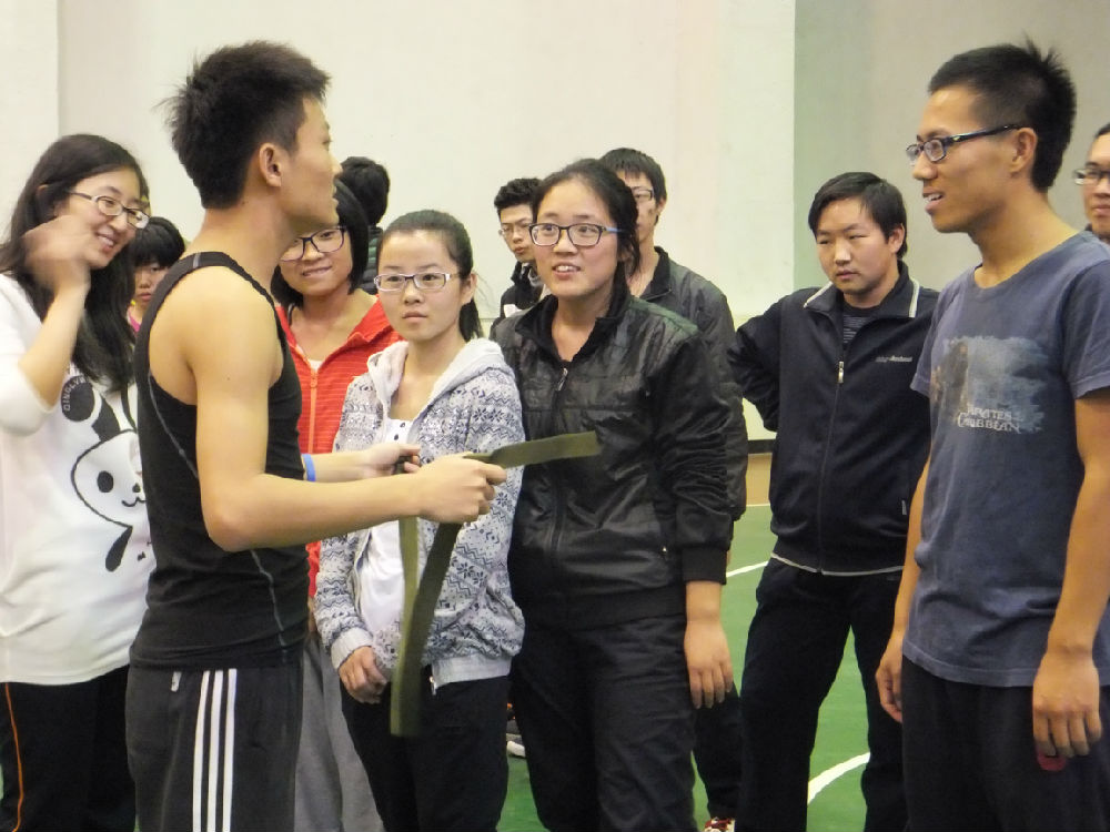 其中有一个训练项目是“盲人方阵”,是把大家的眼睛蒙住,分散在一个广场上,寻找一条绳子,然后用这根绳子围绕成一个面积最大的正方形。当所有的人被蒙上眼睛的时候,难度很大,且过程中产生了一些意见分歧,最终班长站出来,统一协调大家完成原始方案。建立一支相互信任的团队,比任何激励都重要。