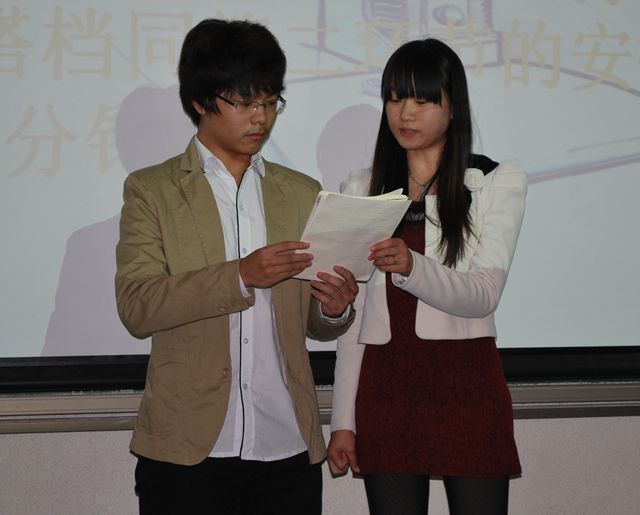 比赛接近尾声时,主持人公布了本次比赛的优胜情况:获得本次主持人大赛的个人奖第一名是李妍同学,第二名是张明月同学,贾安宁与陈鑫明两位同学并列第三,最佳组合为第二组的李妍与贾安宁同学。杨博文为获得优胜奖的同学颁发奖品,于洋对以上选手的表现作以总结和点评,王妍鹏对本次比赛补充说明了一些意见和并提出建议。在热烈的掌声下中本届主持人大赛圆满结束。