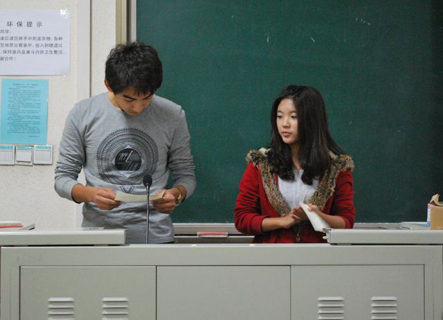 在第一个环节里,选手们进行了精炼简洁的自我介绍,他们风格迥异的介绍令人耳目一新。在第二个环节里,将六人随机分为三组,第一组为园艺二班的张丹与园艺一班的于思源,第二组为植保二班的李妍与贾安宁,第三组为资环二班的陈鑫明与园艺一班的张明月,他们需要在十五分钟内写好三个演讲的串词。选手们备稿期间,主持人发起了念绕口令的互动游戏,活跃了现场的气氛同时展现了参赛人员扎实的基本功。