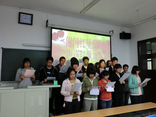 2011年4月25日晚8:30,MS88官方网站植保本科生党支部全体党员在教A104继续举行了以“闪闪红星照前路,声声红歌颂党恩”为主题的红歌会系列活动,党支部成员每个人脸上都洋溢着热情的笑容,充满对红歌的喜爱。