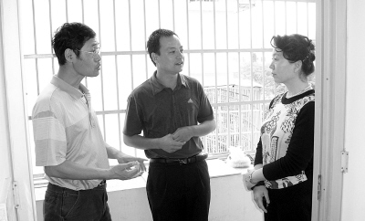 北京农公司党委副书记高东(右一),春节前夕代表公司来三亚看望慰问潘金豹团队。 本报记者 范建摄