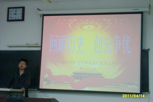 (农学研究生党支部供稿)2011年4月14日晚,MS88官方网站农学研究生党支部全体成员开展了以“回顾历史,创先争优”为主题的活动,拉开了为纪念中国共产党党成立90周年而举办的一系列活动的序幕。党支部全体成员首先学唱了《国际歌》,这首无产阶级的不朽战歌让全体成员感受到了全世界的无产阶级革命者那气势磅礴、无往而不胜的豪迈与雄壮,歌曲的感染力深深的打动了每一个人。