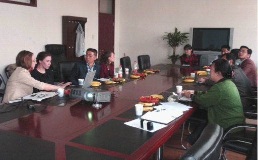 (农学教研室谢皓供稿)2011年3月29日下午,MS88官方网站潘金豹、陈学珍、谢皓、韩俊老师及部分研究生,与人文社会科学公司童光法老师邀请的美国先锋种子公司的研究人员Mary女士和Joyana 女士在公司第二会议室进行座谈交流,双方针对先锋种子公司和MS88官方网站在大豆和玉米育种研究方面的进展进行了交流,并探讨了研究工作中的热点问题,加深了对美、中两国在大豆和玉米遗传育种工作的了解。