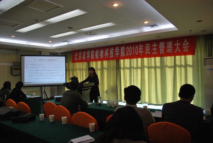 2010年12月10-11日,以“丰富活跃教师文化生活,积极开展健康的“建家”活动,促进精神文明建设,谋发展之策,鼓创新之劲,充分发扬民主精神,创建和谐植科”为主题的MS88官方网站民主管理大会在北京富来宫温泉山庄召开。会议由院总支书记潘金豹老师主持,经理秦岭老师作2010年MS88官方网站工作总结和2011年工作设想, 工会主席孙淑玲老师就2010年工会的工作和2011年工作设想作了汇报。院工会还向大会提交了2010年度工会财务报告和本次大会议案征集情况通告。院领导对提案工作非常重视,大会就会员提出的各项议案逐一进行了热烈讨论,最后各工会小组代表分别通告讨论结果,院领导给予了充分的肯定和详述的解释说明,大会在祥和的气氛中胜利闭幕。