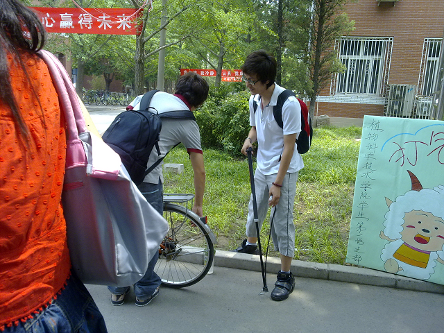 一切准备就绪,活动于6月18日12:10有序进行,支部的同志们个个干劲十足,用最洪亮的声音做着宣传,向路过的每一位骑自行车的同学宣传打气活动和气筒位置,以饱满的精神,热情周到的为每一位同学服务。当听到车主说每一声谢谢的时候,大家心里感到十分的欣慰。