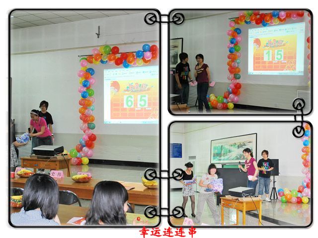 随着六位姑娘们一曲活力四射的舞蹈《撑腰》,庆典活动正式开始。随后钟立坤、李海建的相声表演---《话说信息中心》幽默诙谐的引出由技术部精心打造的《惜今望十》视频回顾专题片,让在座师生直观地了解信息中心一步一步成长的足迹,加上王颖同学的优美配音,让大家如同置身在信息中心走过的岁月中。孙芳菲同学独唱的《最初的梦想》唱出了信息中心全体成员的心声,员工会副主席刘莹带来的《一起走到》,赢得了阵阵掌声,庆典气氛十分活跃,特别是范金娇、陈远客串主持的信息中心保留游戏《指手划脚》,师生们积极参与,配合默契,现场氛围顿时达到高潮。幸运连连串,骆老师、邬老师抽出了在场的六名幸运儿,信息中心指导老师贾慧敏为这几名同学送上了祝福和幸运礼物。