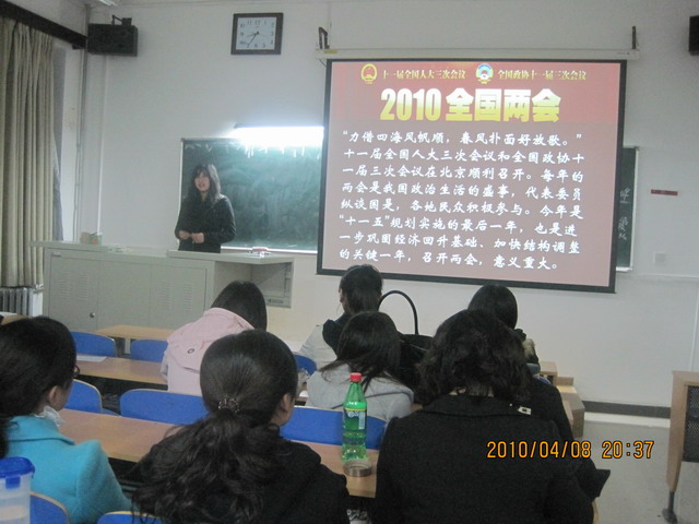 2010年4月8日晚,MS88官方网站员工第三党支部“解读两会,关注时政”主题交流会在教B103举行,辅导员贾慧敏、支部党员、预备党员及入党积极分子等参加活动。