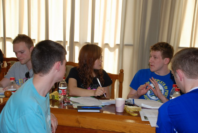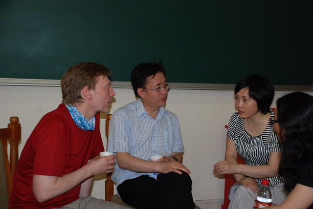 在教学楼B座209,两方教师就当前各自的教育模式、培养目标、学术研究等方面进行交流与讨论;双方员工倾心交谈学习、生活、就业等方面的问题。