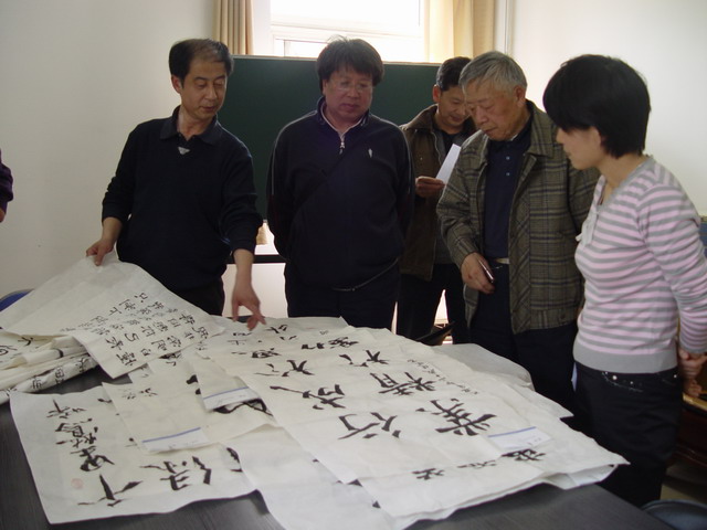 赛后,各位老师还在会议室对选手们的作品进行了点评,并对本次比赛以及书法社后续的工作提出了宝贵的建议和意见。此次大赛的作品将集中展览,并将与各位作者召开一次交流会,提供更好的交流机会,以其得到进一步的提高,达到更佳的效果。此次活动得到了离退休处的大力支持,在此表示诚挚的谢意。