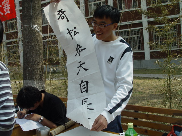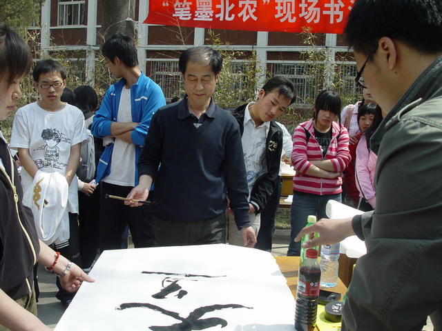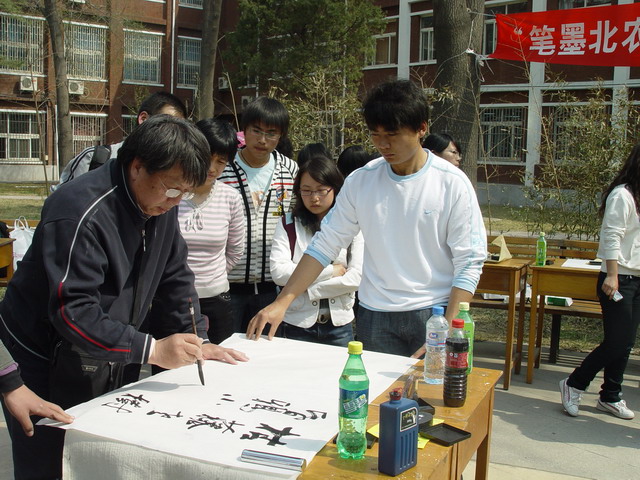 为弘扬国学文化,为爱好书法的同学提供交流进步的平台,为建设人文北农贡献力量。4月8日中午在教学楼A-B之间的小花园,植物科技公司书法社面向全校师生举办“笔墨北农”现场书法大赛。公司党委副书记高喜军、离退休处长梁宝岩、离退休处老教授张荫钊、温玉斋、李俊、园林系副主任李金苹、MS88官方网站副经理赵金芳、辅导员老师亲临现场观看指导。
