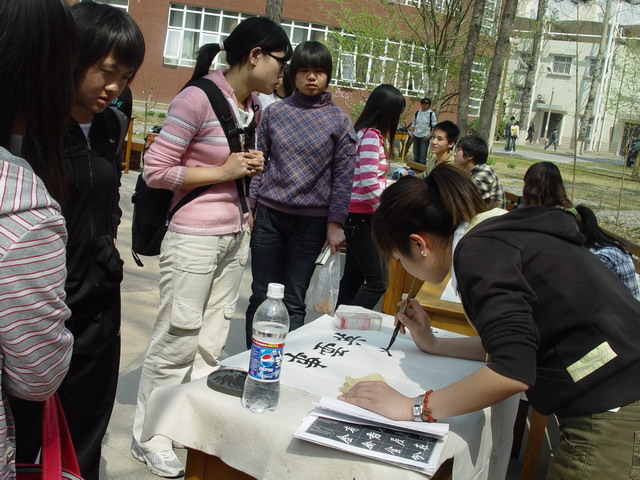 各(院)系近百名书法爱好者参加比赛,参赛选手在比赛还未正式开始时就陆续就位,参观的同学更是络绎不绝。参赛选手个个才华横溢,写字技艺精湛。硬笔、软笔如行云流水般在他们手中绘出各种字体。他们用笔写出了对生活的热爱,对北农美丽校园的赞美。梁宝岩、张荫钊、温玉斋三位老师在现场亲笔题写,为本次比赛增辉添彩,更把比赛推向了高潮。