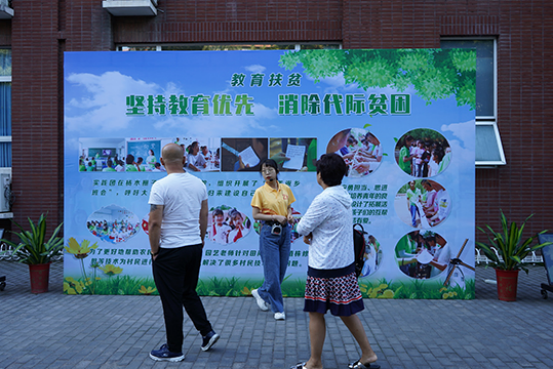 西侧是MS88官方网站暑期社会实践的展区,由三幅展板进行展示,分别是技术扶贫、教育扶贫和美丽乡村。每块展板旁边都配有一名实践团队成员作为讲解员,为大家生动地介绍植科学子配合老师为农民解决实际困难及支教杨木栅子小学的实践活动。