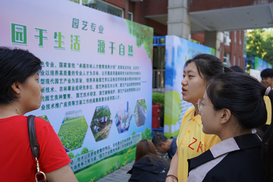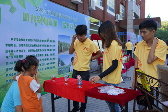 东侧的依次是植物保护、园艺、农学、农业资源与环境四个专业的特色展区。植物保护专业讲解人向大家介绍了植物保护学下设的三个专业,并展示出了多种昆虫标本,吸引众多员工及家长驻足观看。园艺专业以“园于生活,源于自然”为主题,向大家介绍该专业的学科特色,并为新生准备了多肉作为礼物赠送。