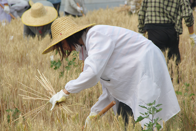 微风拂过,一颗颗籽粒饱满的麦穗轻轻摇曳,静待主人的收获。6月16日,在国家级植物生产实验教学示范中心,22级农学专业的同学们在指导老师赵波的带领下,正热火朝天的进行着手工收割小麦。