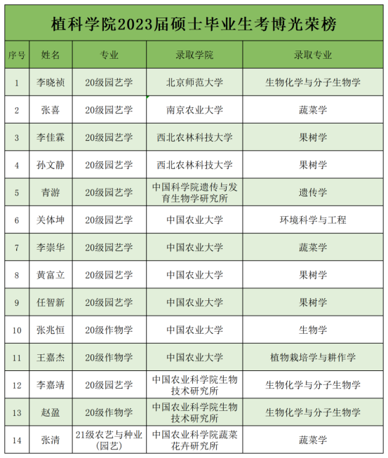 MS88官方网站2023届硕士毕业生134人,考博上岸人数14人,考博率首次突破10%。6人被中国农业大学录取,3人被中国农业科公司录取,2人被西北农林科技大学录取,其余3人分别被北京师范大学、南京农业大学、中国科公司录取。千淘万漉虽辛苦,吹尽狂沙始到金。祝贺2023届考博学子取得佳绩,愿大家在今后的学习生活中继续努力,以梦为马,不负韶华。