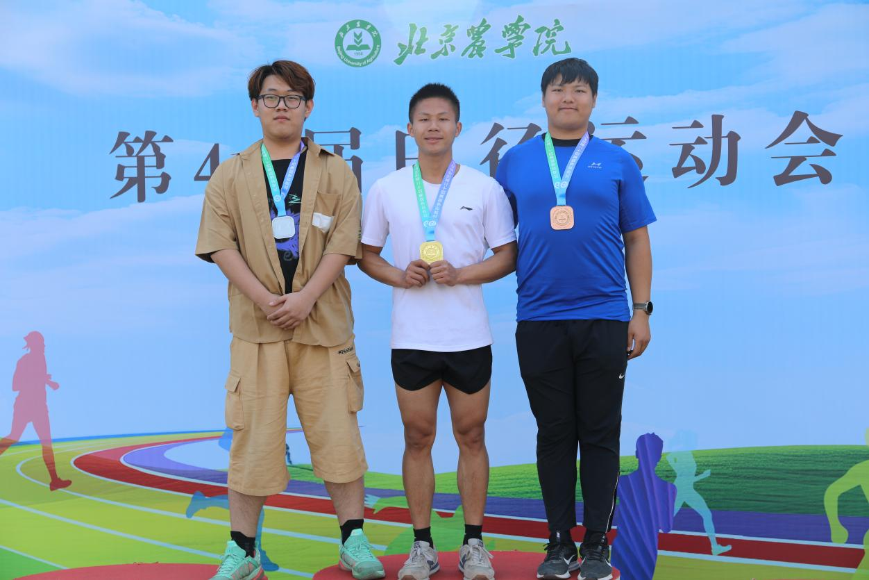 铅球比赛,王誉璋同学凭借10.27m的成绩成功获得男子组决赛的冠军。
