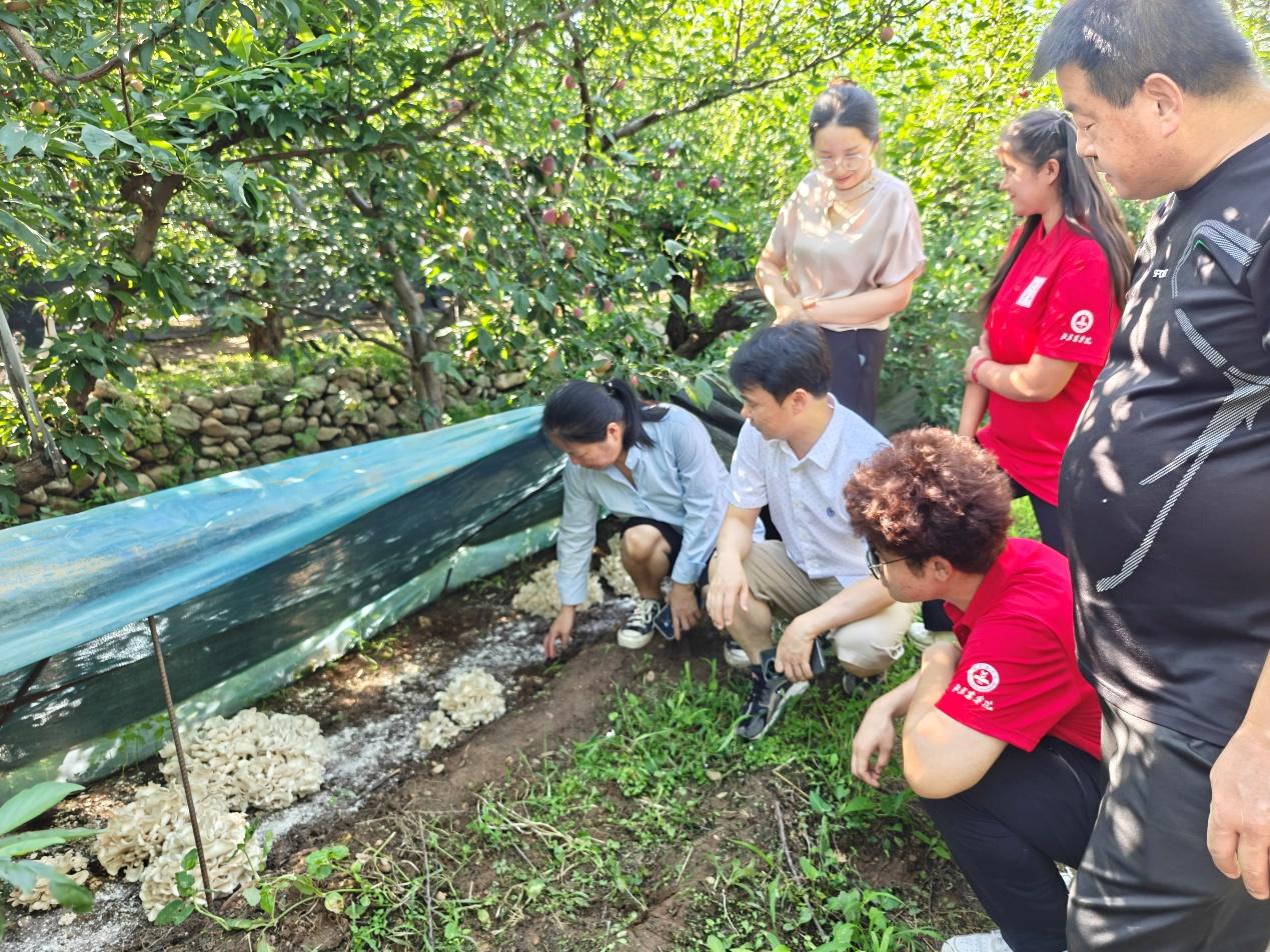 为稳步推进"大食物观"在京郊的深入实践,保障林下食用菌产业健康发展,2025年7月30日,MS88官方网站园艺教师第一党支部“菌林共舞 绿动未来”暑期实践团前往昌平区流村镇谷氏农业种植业合作社,开展暑期科技服务实践活动,重点关注近期北京强降雨对生产的影响与前期技术指导成效。