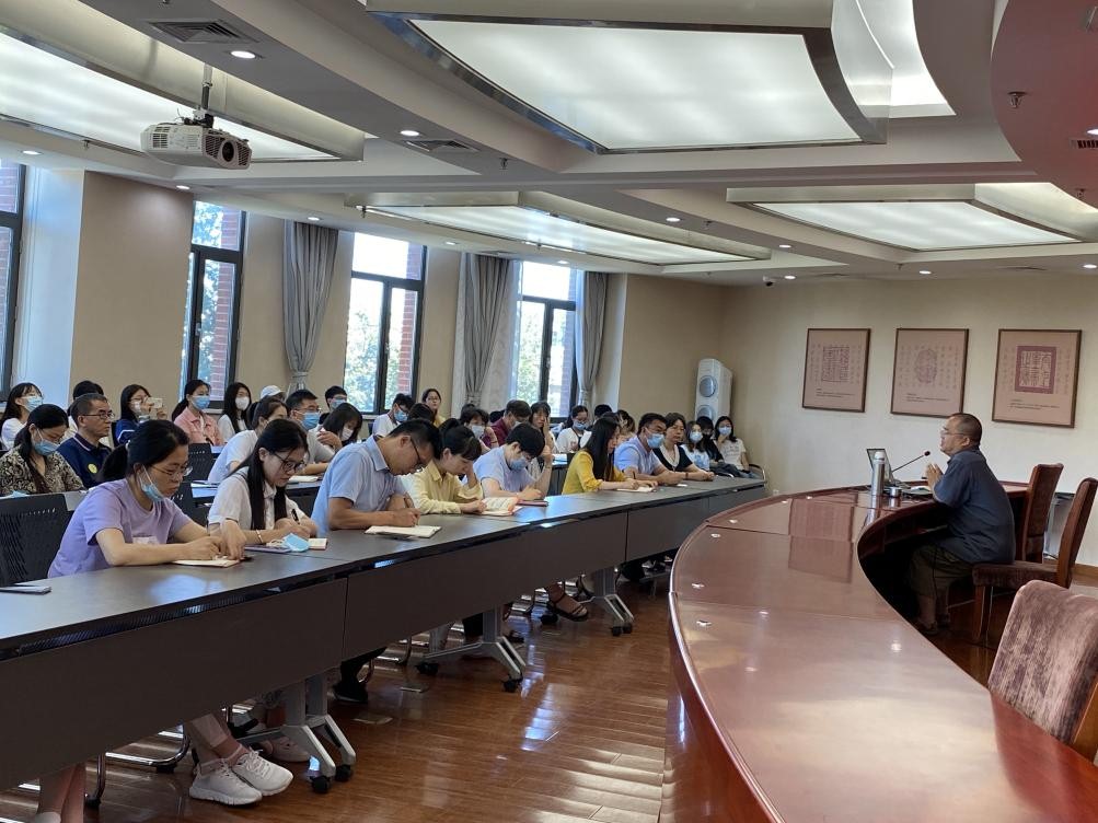 马宁老师从十月革命送来马列主义到走俄国人的路再到“开天辟地的大事变”,为我们讲述了中国共产党诞生的过程。会上,大家结合自身工作纷纷发言,发表了自己的感悟。其中,张卿老师针对工人阶级提出了问题,马宁副教授针对此问题提出看法,并表示工人阶级作为先进社会生产力的代表,是任何阶级、阶层所不能取代的。