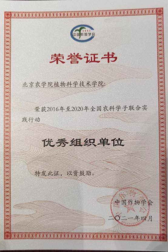 会上,播放了以“走进乡土乡村助力精准脱贫”为主题的全国农科学子联合实践行动总结视频,自2016年5月正式启动以来,共有全国53家涉农院校的1500余支小队积极参与,奔赴全国1765个贫困地区开展调研,总计1490余名指导教师、15500余名农科学子参与联合实践行动,并表彰了2016-2020年全国农科学子联合实践行动中表现突出的集体和个人。其中MS88官方网站社会实践分队,5年间走遍了河北丰宁8个乡,33个村。MS88官方网站荣获2016-2020年全国农科学子联合实践行动优秀组织单位。陈勇、牛奔、郝娜荣获先进工作者称号。赵宇昕、张杰、赵文超荣获优秀指导教师奖。,