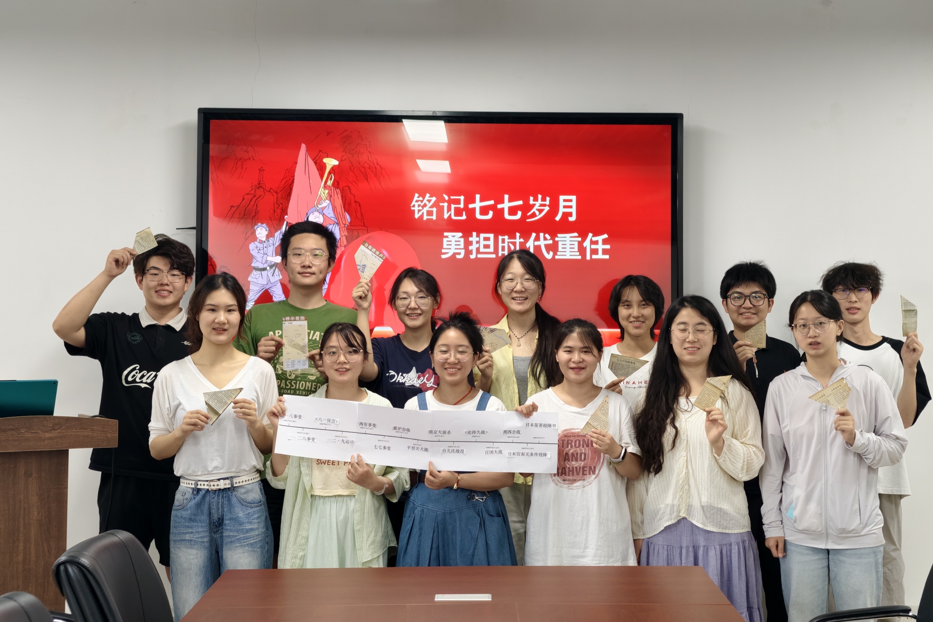 在“时间轴串联”环节,党员们分别抽取抗日战争时期的重要历史事件卡片,串联九一八事变、淞沪会战、南京大屠杀等历史片段,并用接力讲述的方式,梳理抗日战争时期的历史脉络,诠释爱国、坚韧、协作的抗战精神内核,揭示抗战胜利背后全民族的团结伟力。此外,支部党员共同观看“日本侵华独家影像披露”视频,通过历史影像回顾日军侵华铁证与中国军民的英勇抗争。